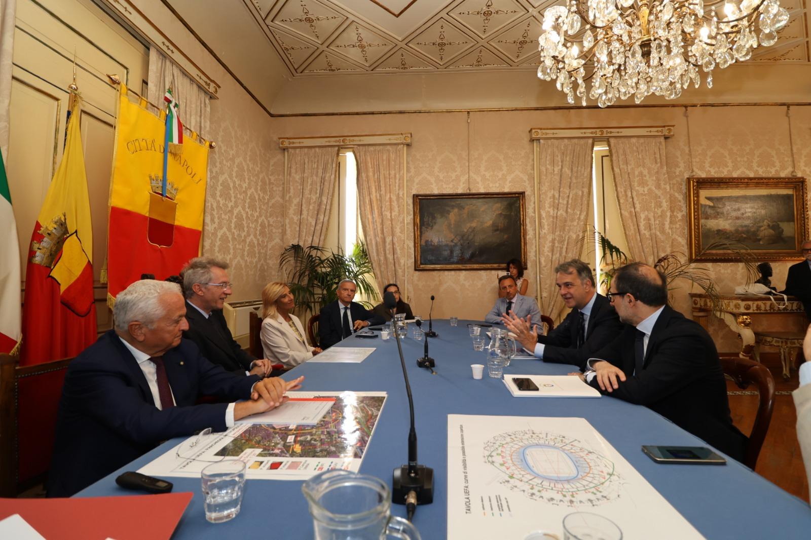 Nel corso dell’incontro, al quale ha preso parte anche Arturo Testa in rappresentanza della SSC Napoli e Maria Grazia Falciatore, Capo di Gabinetto del Sindaco, è stato illustrato il piano tecnico per l’ammodernamento dell’impianto sportivo, parte integrante della candidatura di Napoli a città ospitante dei Campionati Europei.